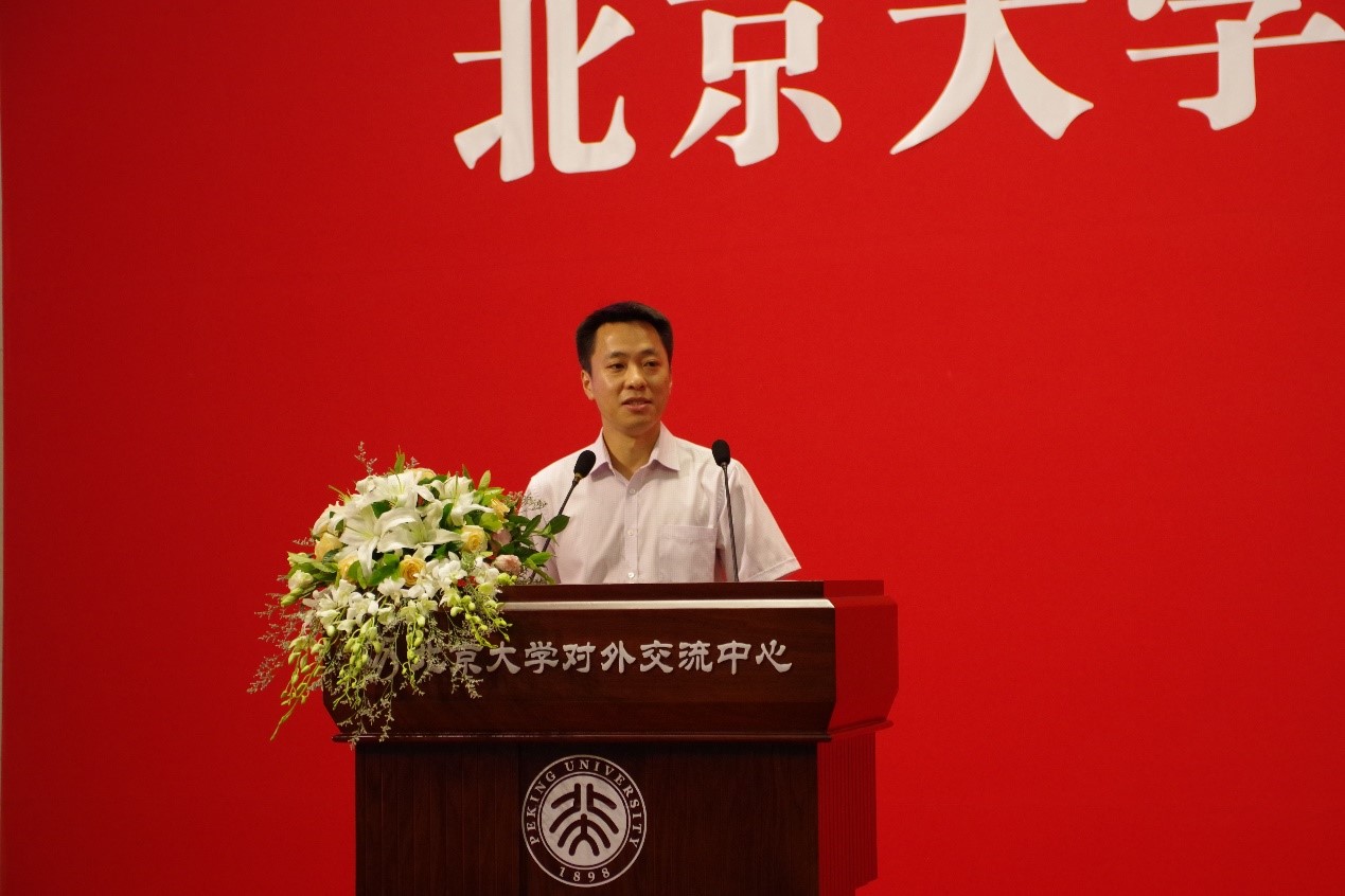 接下来,理论物理研究所教授朱守华作为教师代表致辞。他分享了三十年前进入北大物理学院的经历,希望同学们认真考虑北大能提供的机会与可能性。学校和学院的平台可以帮助同学们走的更高更远,同时同学们又面临着取舍,需要保持适当的压力。最后,朱老师表示,物理学科固然非常“硬核”,然而也只是人类认识世界的一个部分,他希望同学们不要独占“优越”,要开拓视野、全面发展。