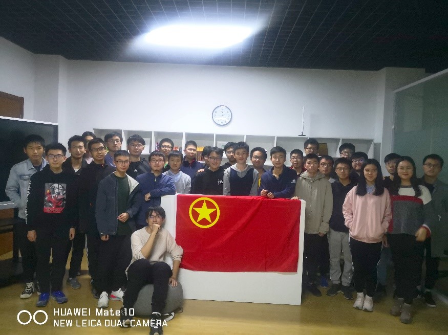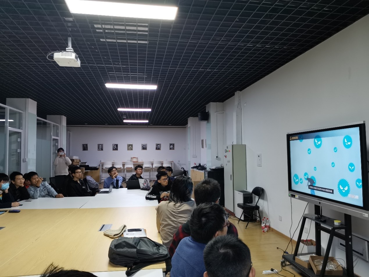11月7日晚7-9点,物理学院19级本科1班在物理学院主动学习实验室大厅(西楼地下B116)开展了以“弘扬伟大抗疫精神,践行爱国卫生运动,争做圆梦新一代”为主题的团日活动。活动由“爱学习、爱科学”,“团系统推优入党”和“集体生日会”等三个部分组成。我们班的团支书李尊祺同学主持会议,班长陈仲韬,组织委员蒋磊,生活委员郑若锴,宣传委员杜广昊协助主持。共有29位同学参与会员,班主任彭士香老师和辅导员武晓园学长列席会议。