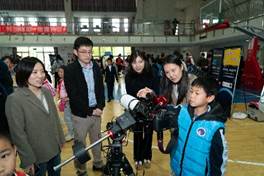在科普集市上,物理学院志愿者们为中关村二小的同学们带来了起电机、辉光球、鱼洗盆、液氮冰激凌等各类实验。北京大学青年天文学会的志愿者结合绚烂的天文摄影图片为同学们讲解天文知识,还与中关村二小星云社的小志愿者共同演示不同口径天文望远镜的使用方法和观测技巧,一起探讨天文知识、分享观测感悟。