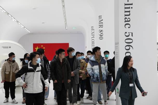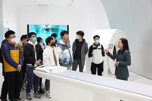 活动伊始,北京联影研究院工作人员组织大家参观联影设备展厅,详细介绍联影医疗的全球布局、功能定位、业务板块及尖端设备,重点围绕技术研发和智能孵化两个部分细致讲解,帮助同学们从放射成像、AI算法和集成芯片等多个专业领域加深了解。