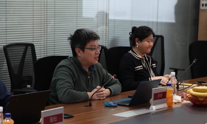 参访结束后,学院师生一行移步至研究院一楼会议室进行座谈交流。北京联影研究院运营院长李铮博士表达对北大物院师生到访的热烈欢迎,并就联影集团整体情况和组织架构进行详细介绍。他从自身经历出发,首先展示我国高端医疗设备行业现状和联影集团总体情况,并依次从联影集团的具体布局、全产品线、亮点设备等多个角度进行讲解,重点强调联影集团以人才为核心资源、坚持核心技术创新、保证关键部件可控的理念,以及从磁共振到X-ray再到智能软件、联影云,深入浅出地介绍了联影医疗的市场占有率及亮点成果。