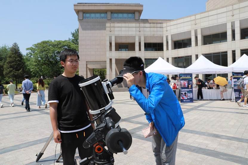 同学们使用北京大学青年天文学会提供的天文望远镜“近距离”感触星空,与社团的同学们一起解码宇宙奥秘。
