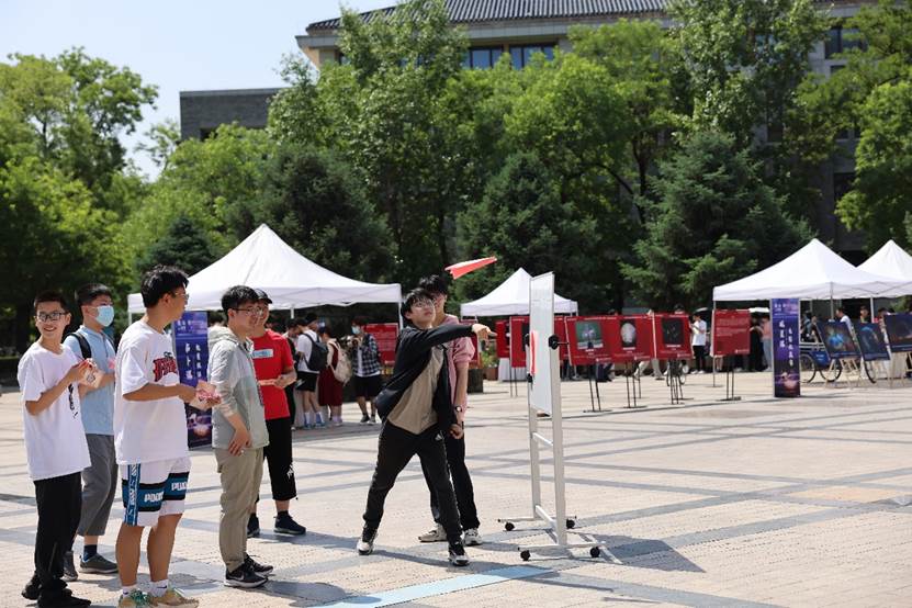 为庆祝北京大学物理学科建立110周年,2023年5月18日,物理学院在百周年纪念讲堂南侧广场举办第22届“青春物理,大树成林”物理文化节系列活动之“魔法学堂”科普集市。5月18日恰逢北京大学物理学院成立22周年,活动以“魔法学堂”形式,结合学科专业特色,设置了物理实验科普、趣味物理挑战赛、“发现物理之美”摄影展、数量级估算大赛以及天文科普等五大展区,以“魔法修炼”之旅搭载物理科普体验,吸引了全校数百名师生共同参与。学院党委书记刘雨龙等院领导到现场参加。