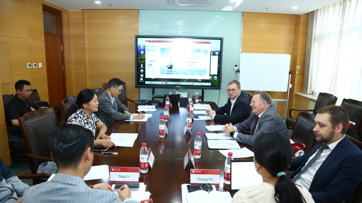 2024年10月14日下午,俄罗斯国家核物理研究大学莫斯科工程物理学院副院长Nikolai Kargin教授一行访问北京大学物理学院。北京大学党委办公室校长办公室主任王新强教授,北京大学物理学院副院长徐莉梅教授,物理学院王平研究员、青年学者边珂、刘放、王睿等会见了来宾,上海合作组织国际中心主任助理申海南、吕兵,俄语翻译吴雨聪,北大物理学院科研交流办孙嘉琪陪同会见。