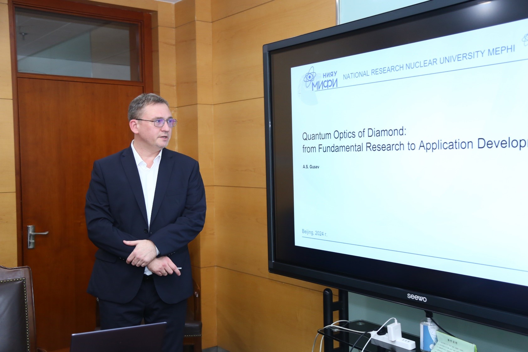 Nikolai Kargin对北大物理学院的热情接待表示感谢,他介绍了莫斯科工程物理学院的基本概况,并表示希望以此为契机,加强研究所与北大的交流,扩大科研合作,共同促进半导体和量子科学的发展。
