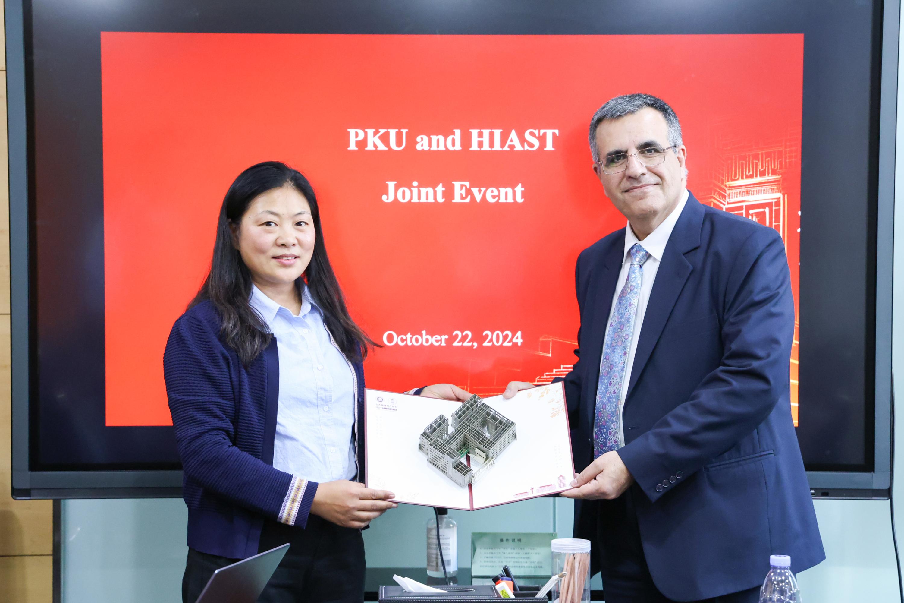 座谈结束后,徐莉梅和Omran Kouba互相赠送了纪念品。参会人员等陪同代表团到北京大学校园进行参观。