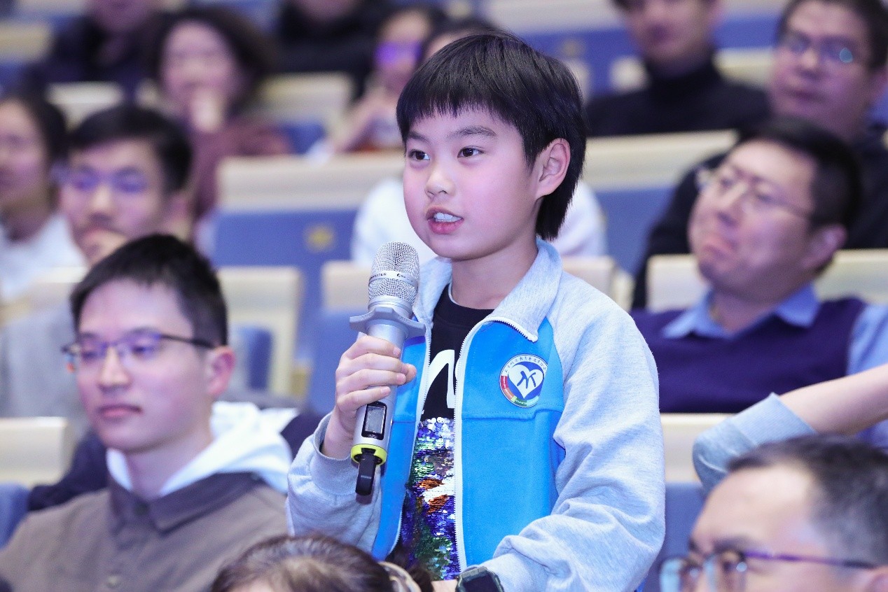 随后的圆桌论坛环节,韩占文院士、史生才院士、赵刚院士和王凯翔博士与主持人吴学兵教授进行了深入交流,分享了他们在天文领域的见解和经验。韩占文院士坦承在恒星研究中还有很多问题亟待解决,史生才院士对我国发展天文设备充满信心,赵刚院士期待更多年轻同学投身于寻找第二个地球的研究之中,王凯翔博士以自身经历鼓励大家要不畏困难去迎接挑战。随后,现场观众积极提问,气氛热烈。其中,一个五六岁的小朋友尤为可爱,虽然稚气未脱,却镇定自若地向韩占文院士询问有关黑洞和宇宙的问题,韩院士认真地进行了解答。参加本次论坛的除了天文界的师生和爱好者外,还有很多中小学生。从他们渴望求知的眼神中,可以看到老一辈天文学家们开拓的天文事业正代代相传,后继有人。