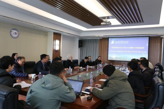 诺贝尔物理学奖得主、中国科学院外籍院士、北京大学讲席教授杰哈・穆鲁(Gérard Mourou)与来自中国科学院紫金山天文台、中国科学技术大学、南京大学、中国科学院国家天文台、中国科学院上海天文台、中国科学院云南天文台等多家科研机构的二十余位代表齐聚一堂,共同深入研讨高功率飞秒激光技术在空间碎片清除领域的应用前景。会议由紫金山天文台副台长吴雪峰研究员主持。