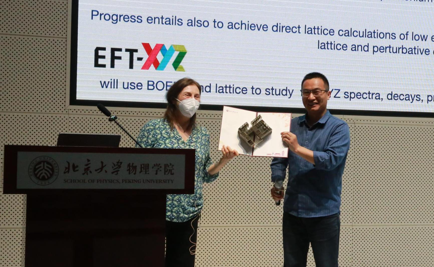 马滟青对Nora Brambilla教授的精彩报告表示衷心感谢,并代表北京大学物理学院赠予纪念品。