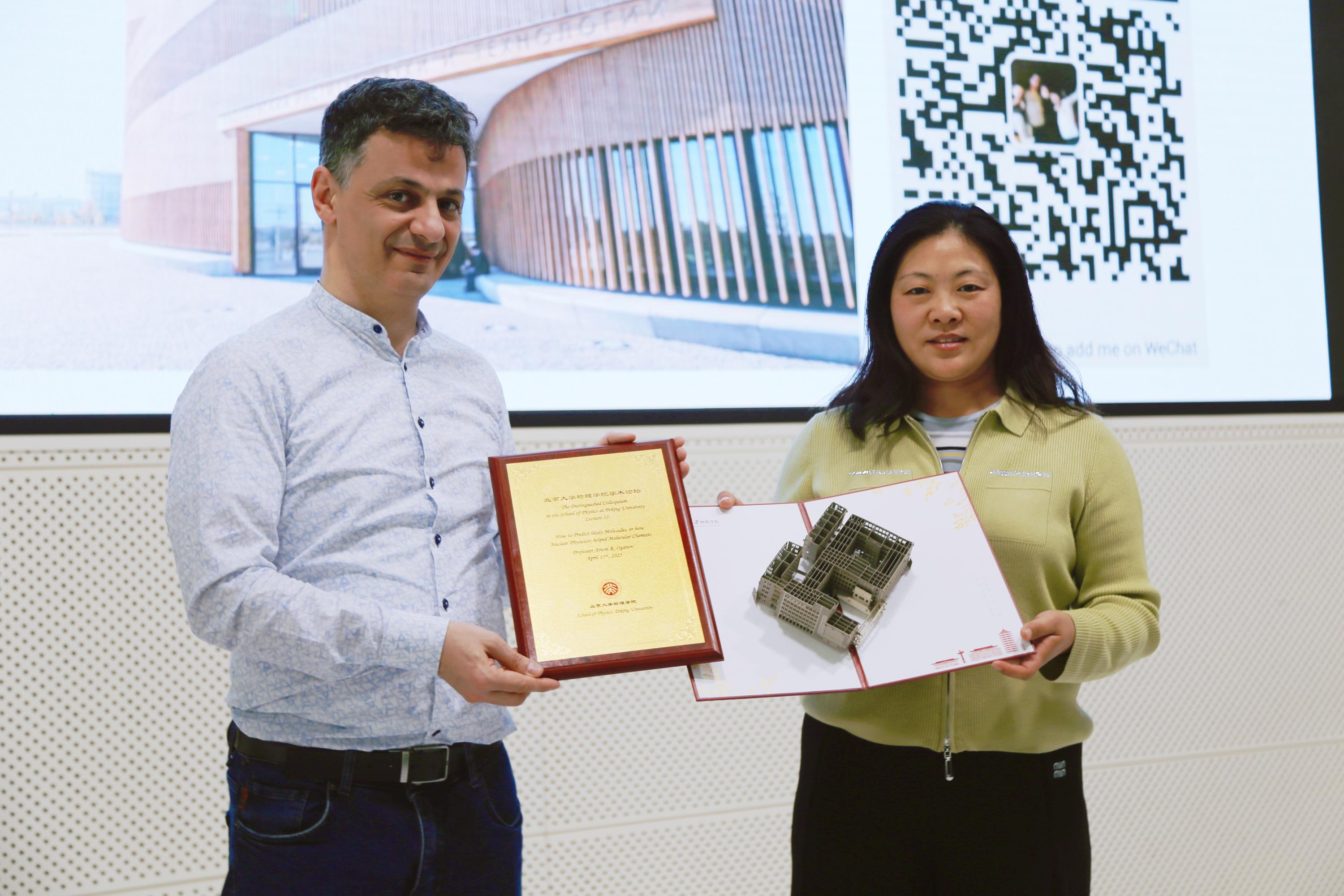 北京大学物理学院副院长徐莉梅教授对奥加诺夫的精彩报告表示衷心感谢,并代表北京大学物理学院向其颁发了纪念证书。