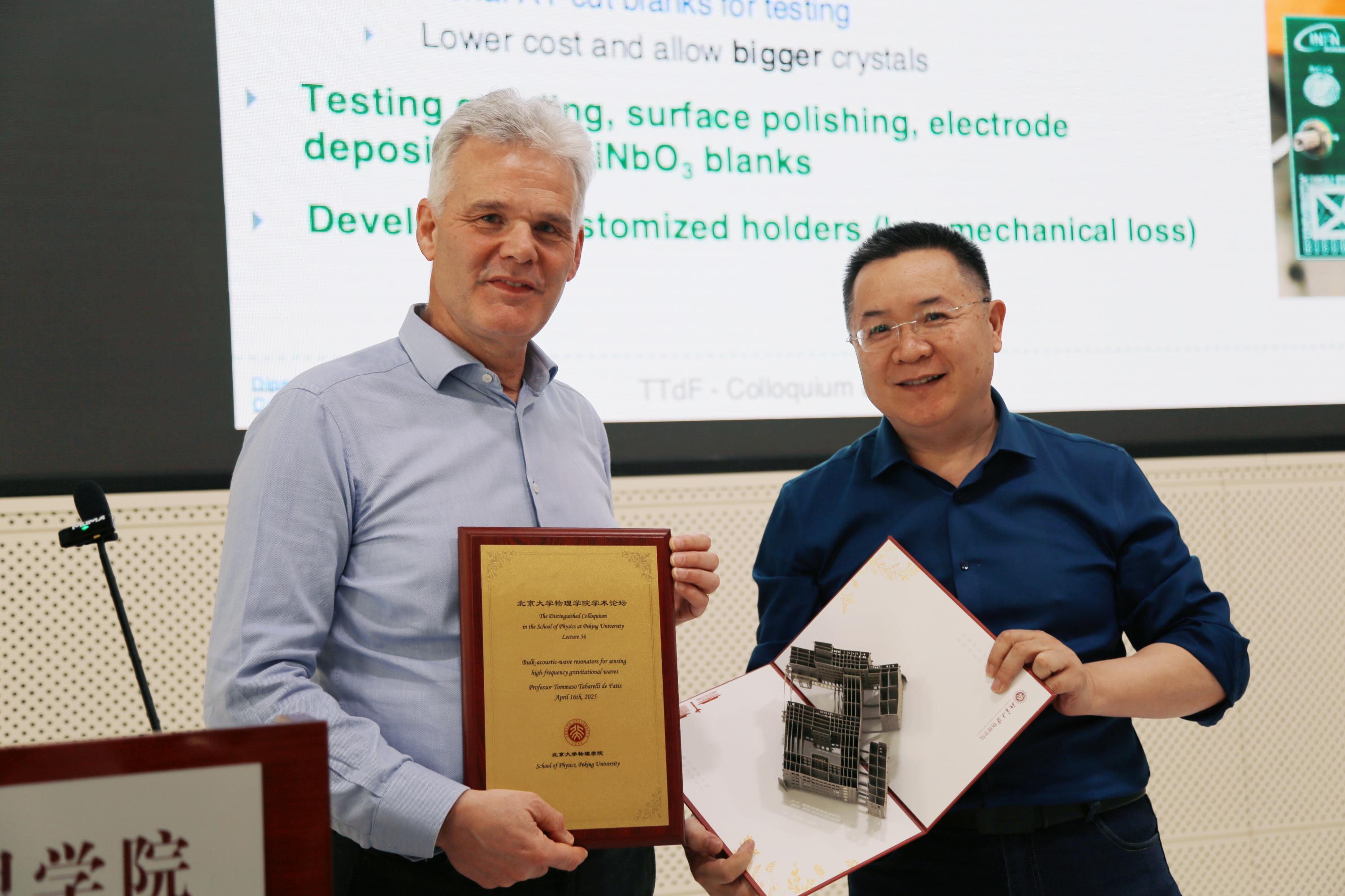 北京大学物理学院冒亚军教授对托马索的精彩报告表示衷心感谢,并代表北京大学物理学院向其颁发了纪念证书。