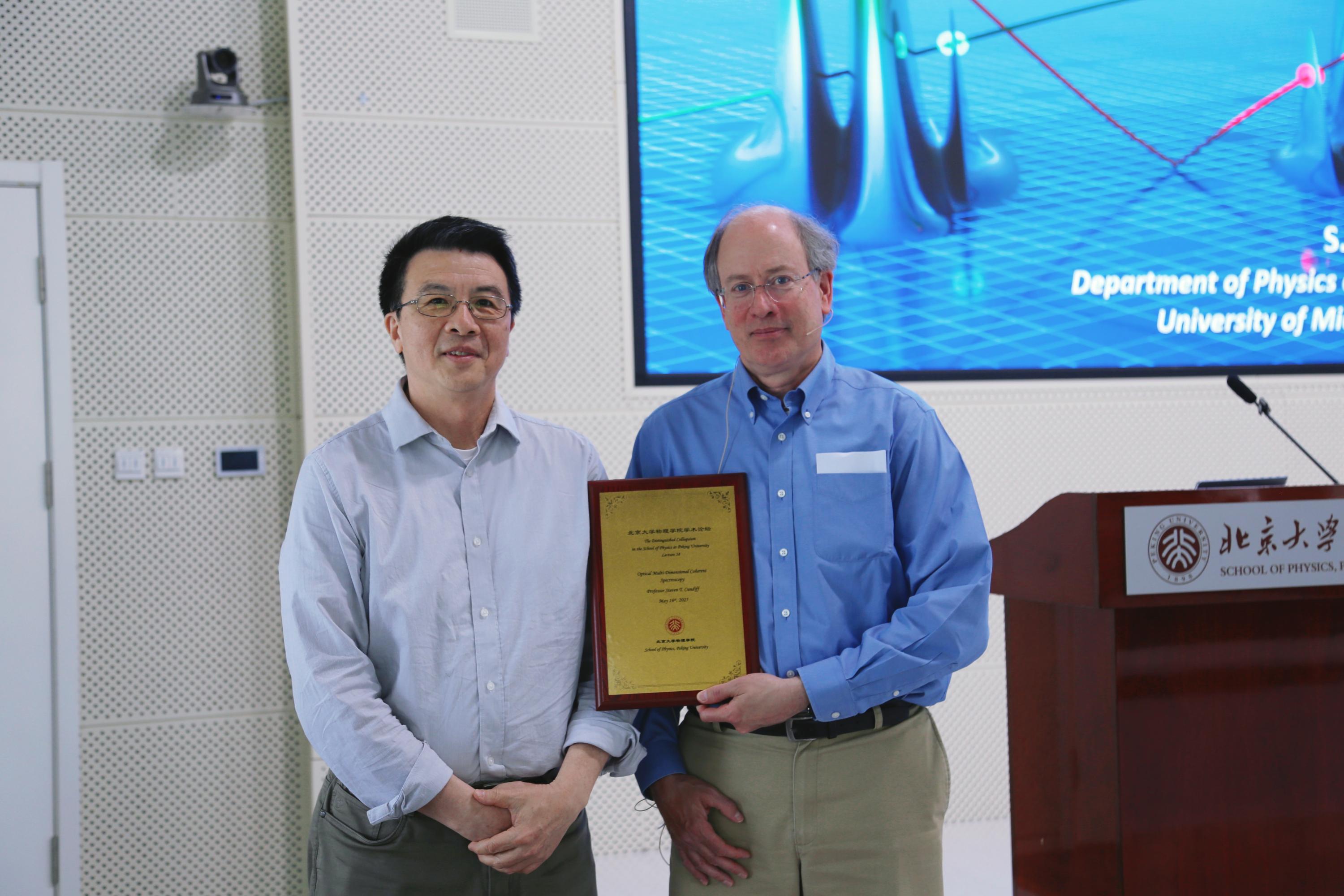 北京大学物理学院特聘研究员SHA WEIJIAN(沙伟坚)对坎迪夫的精彩报告表示衷心感谢,并代表北京大学物理学院向其颁发了纪念证书。