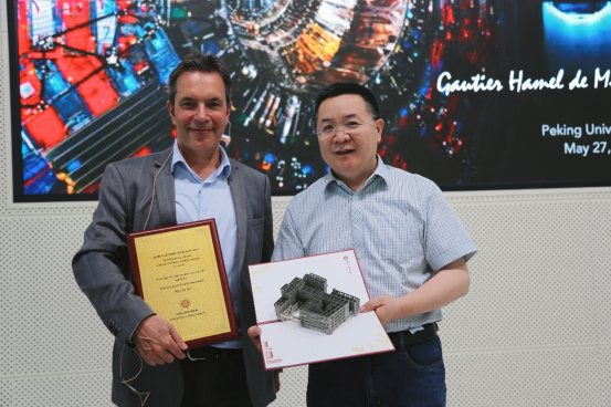此次报告不仅拓宽了师生们对粒子物理前沿问题的视野,也展现了国际大科学合作在基础科学研究中的重要作用。冒亚军对高蒂埃·阿梅尔·德·蒙尚的精彩报告表示衷心感谢,并代表北京大学物理学院向其颁发了纪念证书。