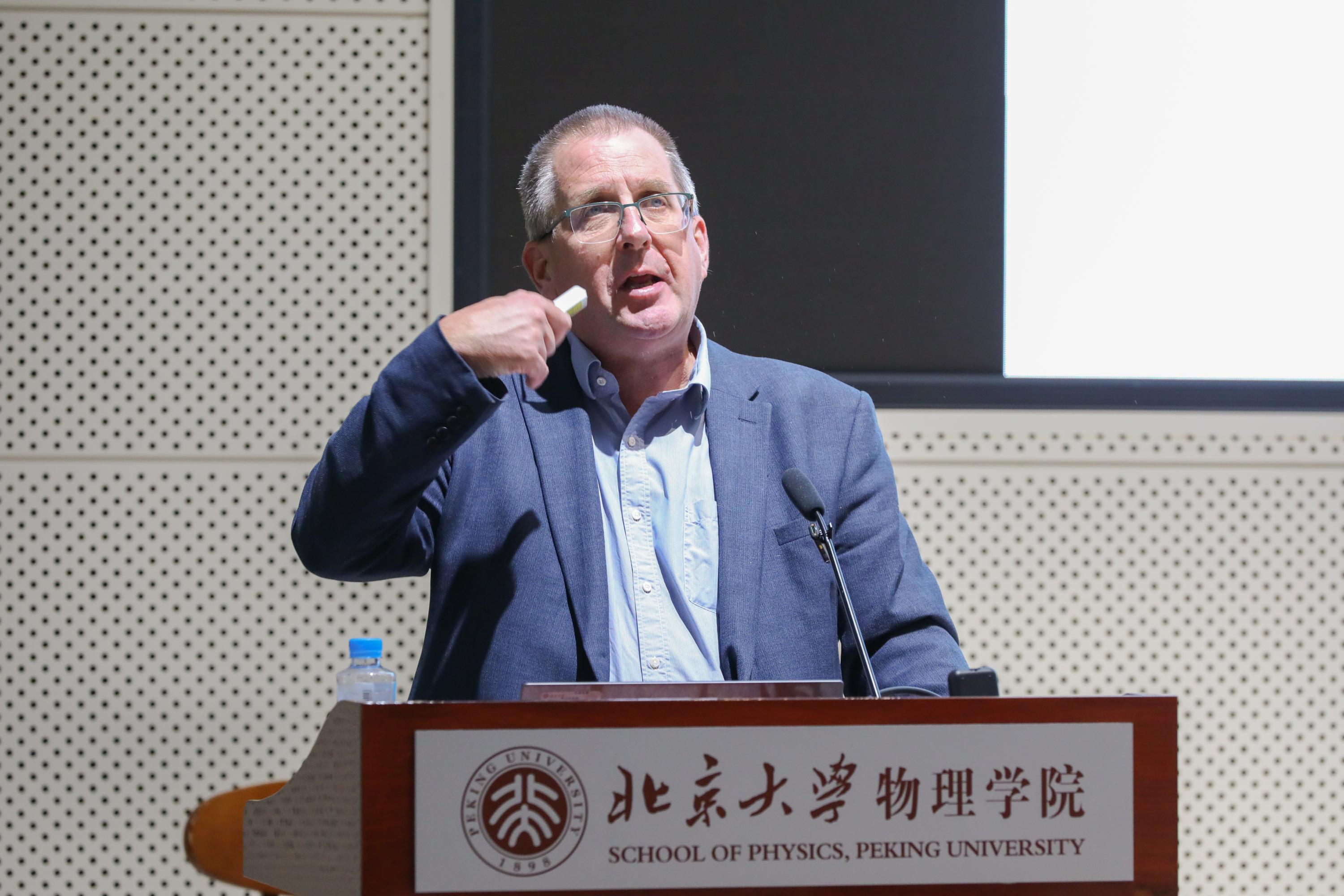 2025年9月16日,北京大学物理学院学术论坛(第六十六讲)在物理西楼思源多功能厅举行。英国牛津大学物理系教授、英国皇家学会会士盖·威尔金森(Guy Wilkinson)作了题为“味物理前沿:通过夸克跃迁研究探索新物理”(The flavour frontier: searching for new physics through studies of quark transitions)的学术报告。本次论坛由北京大学物理学院技术物理系安刘攀助理教授主持。