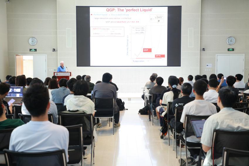 随后,他重点介绍了QGP的实验观测信号及其物理内涵,包括夸克偶素压低(quarkonium suppression)、喷注淬火(jet quenching)、各向异性流(anisotropic flows)等关键现象,并对小系统碰撞中可能形成的QGP研究现状和挑战进行了深入分析。舒克拉夫特还特别指出,冷原子物理与相对论重离子碰撞物理在集体流和强耦合体系动力学方面展现出令人兴奋的交叉与互鉴前景。