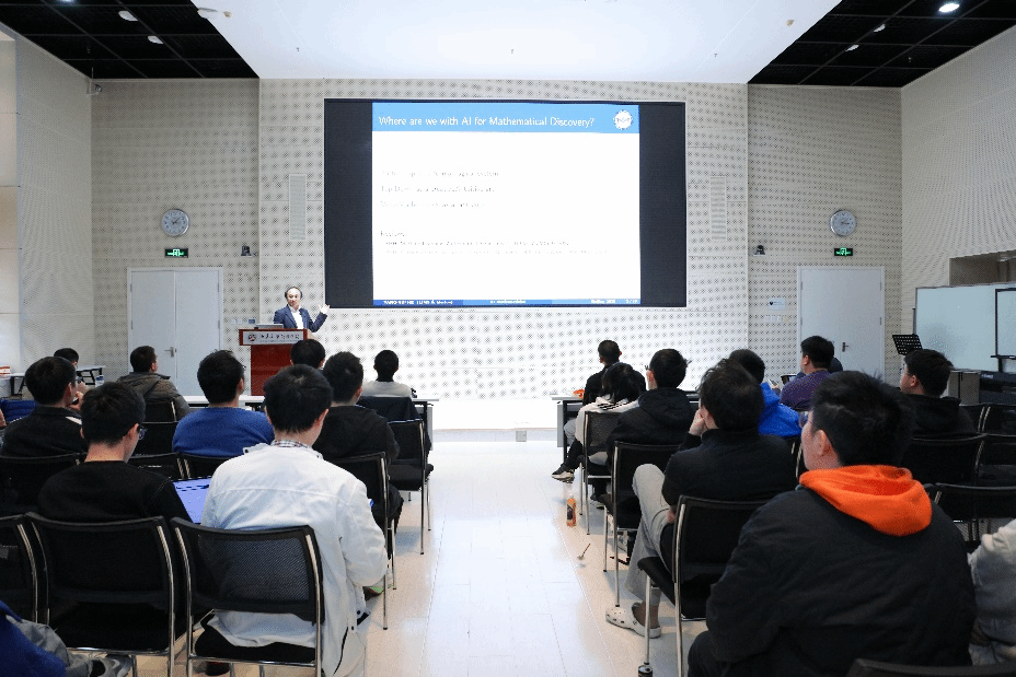 在互动环节中,与会师生围绕“形式化与直觉的分工与融合”、“大模型在严谨性与可复现性上的约束”、“如何构建高质量数学数据集”、“AI在数论与几何中的落地案例”、“对理论物理的反哺作用”等展开深入讨论。