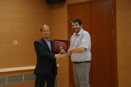 胡永云副院长向Weitz教授颁发 “北京大学百年物理讲坛”纪念牌 |