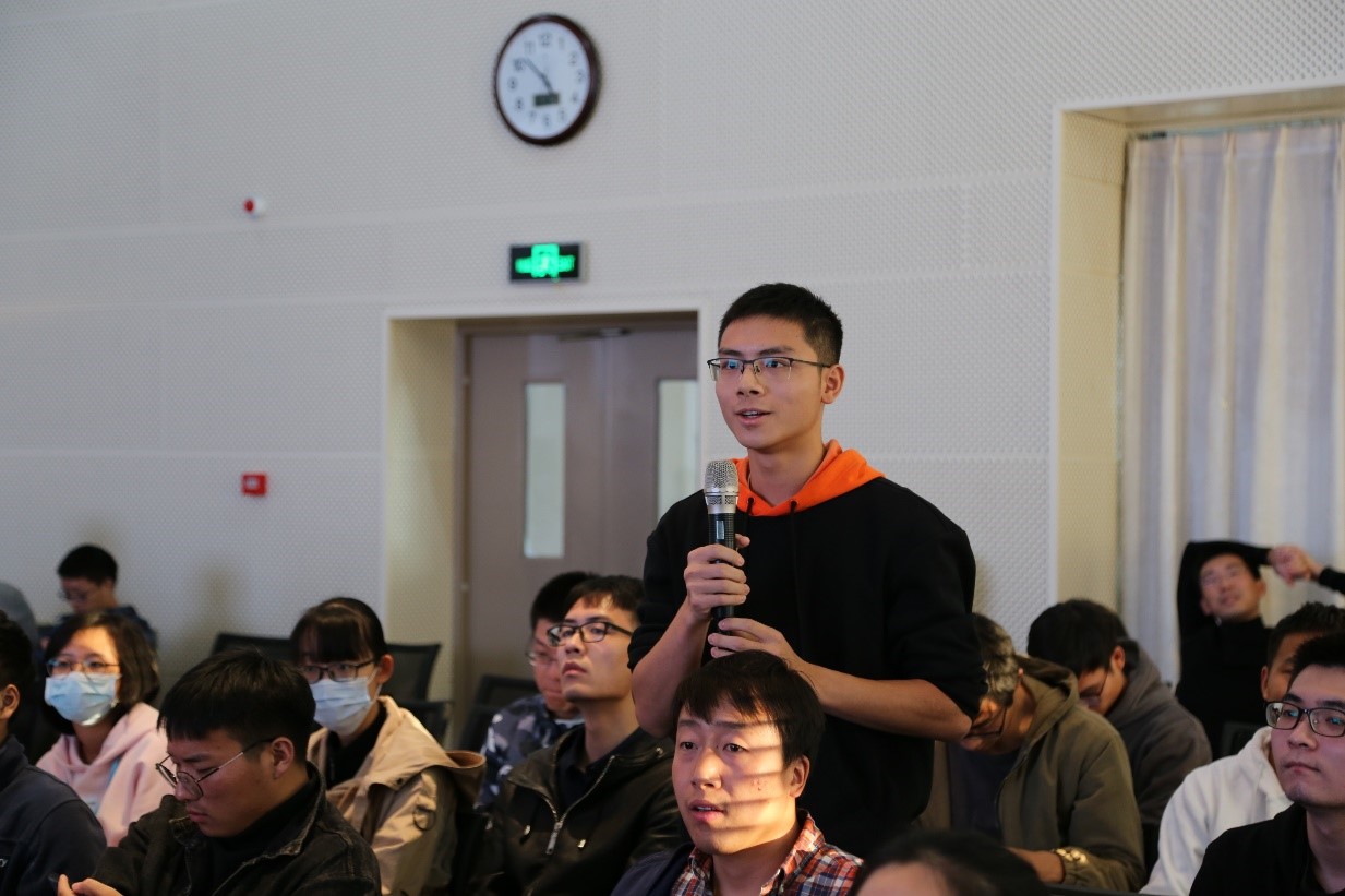 报告在师生热烈的掌声中结束,在座师生就黑洞相关问题提问,吴学兵教授和陈斌教授给予了耐心和细致的解答。