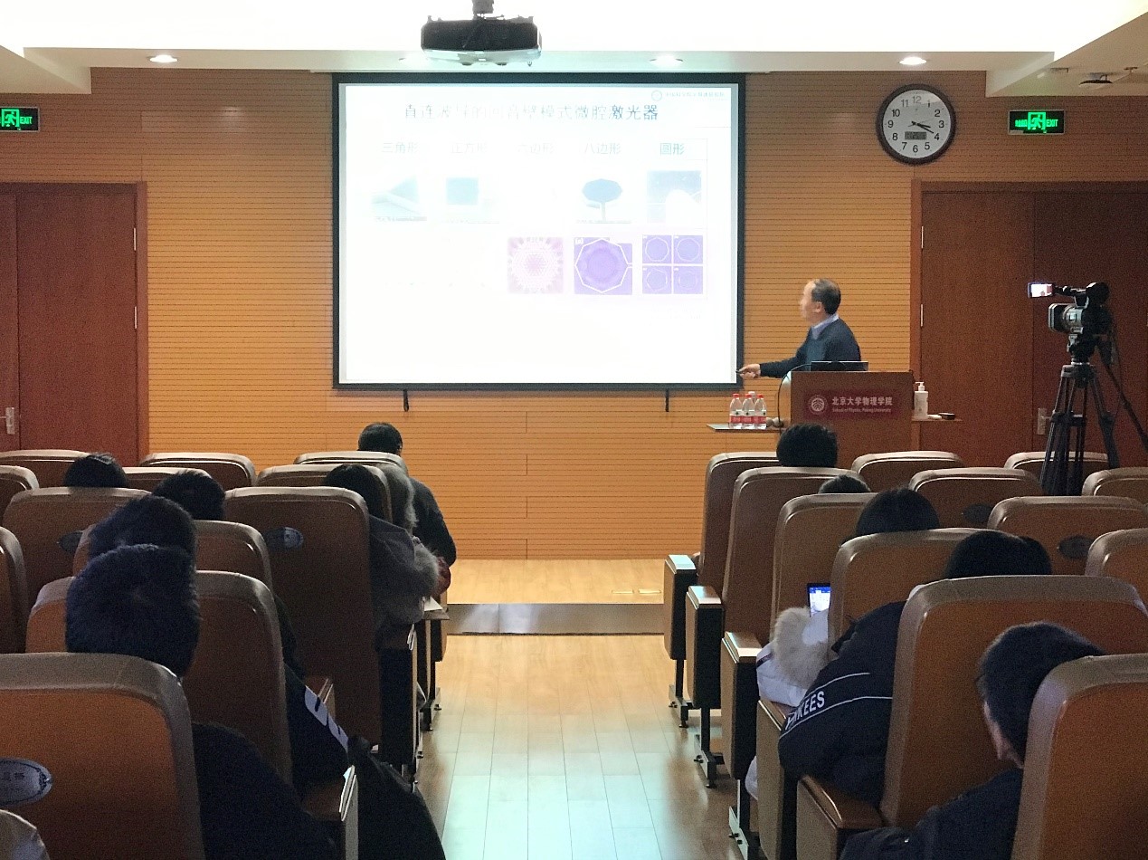 2020年11月25日下午,北京大学物理学院学术论坛第三讲在物理学院西楼202会议室举行。中国科学院半导体研究所研究员、集成光电子学国家重点联合实验室学术委员会主任黄永箴应邀做了题为“双模微腔激光器模式调控及应用”的学术报告。本次论坛由现代光学研究所教授、人工微结构和介观物理国家重点实验室副主任胡小永主持。