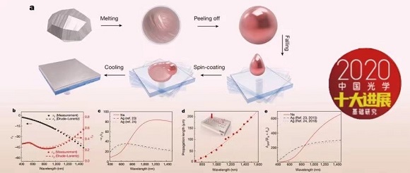 人工微结构和介观物理国家重点实验室、纳光电子前沿科学中心马仁敏研究员课题组与南京大学朱嘉、周林、祝世宁团队等,基于液态金属旋涂技术,首次展示了金属钠微结构的制备和近红外波段室温低阈值纳米激光器。碱金属本征的低损耗特性和独特的电化学性质将有力地推动新型等离激元功能器件的发展。相关成果以“稳定高性能钠基近红外等离激元器件”(Stable, high-performance sodium-based plasmonic devices in the near infrared)为题,发表于《自然》(Nature, 2020, 581: 401—405);博士后毛逸飞为共同第一作者,马仁敏为共同通讯作者。