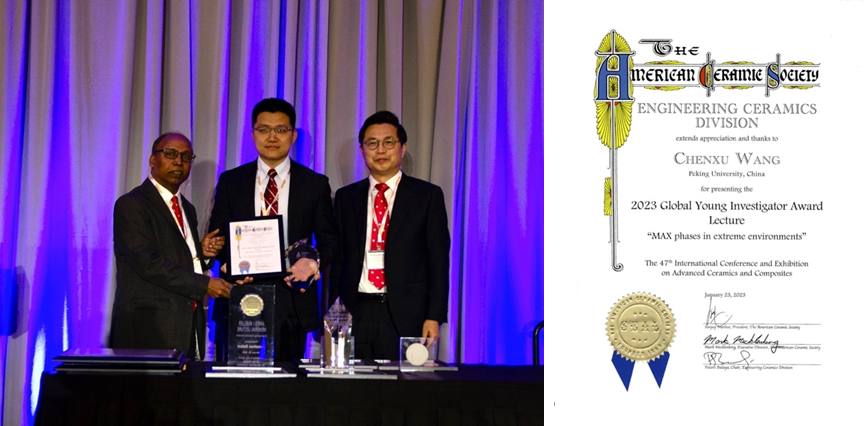 2023年1月22—27日,第47届国际先进陶瓷与复合材料大会在美国代托纳比奇市举行。开幕式上,北京大学核物理与核技术国家重点实验室、物理学院重离子物理研究所王晨旭研究员被授予美国陶瓷学会(American Ceramic Society)工程陶瓷部2023年度全球青年科学家奖(2023 Global Young Investigator Award),以表彰其在强辐射等极端条件下核用陶瓷材料研究领域的突出贡献,并作为本届唯一获奖者应邀做大会报告。