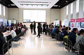 在企业宣讲环节,14家院友企业代表依次介绍了自己企业的基本情况和招聘需求,其中有不少是企业的创始人亲自宣讲。学生们认真聆听,对参会的企业有了进一步的了解。午餐交流会后,毕业生们向自己感兴趣的企业投递简历,各企业与学生详细面谈,约定面试等事宜。