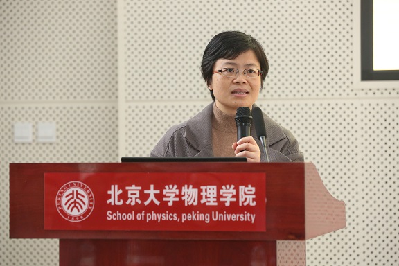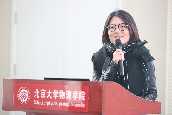 活动开始前,物理学院“物动音趴”合唱团的同学们首先带来开场表演,一首《爱因为在心中》表达了学院学生对师兄师姐回家的热烈欢迎。之后活动正式开始,董晓华代表学院致辞,她首先对各位院友回到物理学院表示热烈欢迎,对兄弟单位和院友们的支持和帮助表示感谢。她紧接着通过一组幻灯片介绍了学院基本情况、应届生毕业就业现状、近年来举办的院友活动以及院友发展等情况,回顾了物理学院历久弥新、光辉灿烂的百年历史,表达了对即将到来的北京大学120周年校庆以及学院第二个百年发展的期待。董晓华表示,物理学院团委主办、院就业实践中心策划实施的“青藤计划”首届院友企业专场招聘会,正是希望在学院学生和院友企业之间搭建桥梁,让院友企业能更好地招到学院学生,同时让学院毕业生能更多地走向院友企业。
