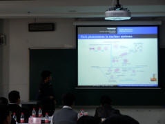 之后,在大家饱满的精神和热情中,第十一届北大物理“钟盛标教育基金”研究生学术论坛正式拉开帷幕。报告中,每一位参赛同学都精心准备了自己的演讲材料,通过PPT将自己一年来的学术成果给大家做了交流。