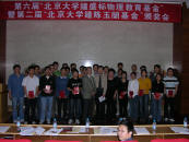 2008年5月5日下午,第六届“北京大学钟盛标物理教育基金”暨第二届“北京大学钟陈玉蘭基金化学学术论坛”颁奖会在新化学南楼二层报告厅隆重举行。基金设立人钟赐贤教授及夫人夏晓峦博士,林建华副校长,物理学院院长叶沿林教授、副院长马伯强教授、沈波教授、王若鹏教授,化学学院院长高松院士、副院长王剑波教授,校基金会秘书长邓娅博士、副理事长许诤女士以及获奖师生参加了颁奖典礼。