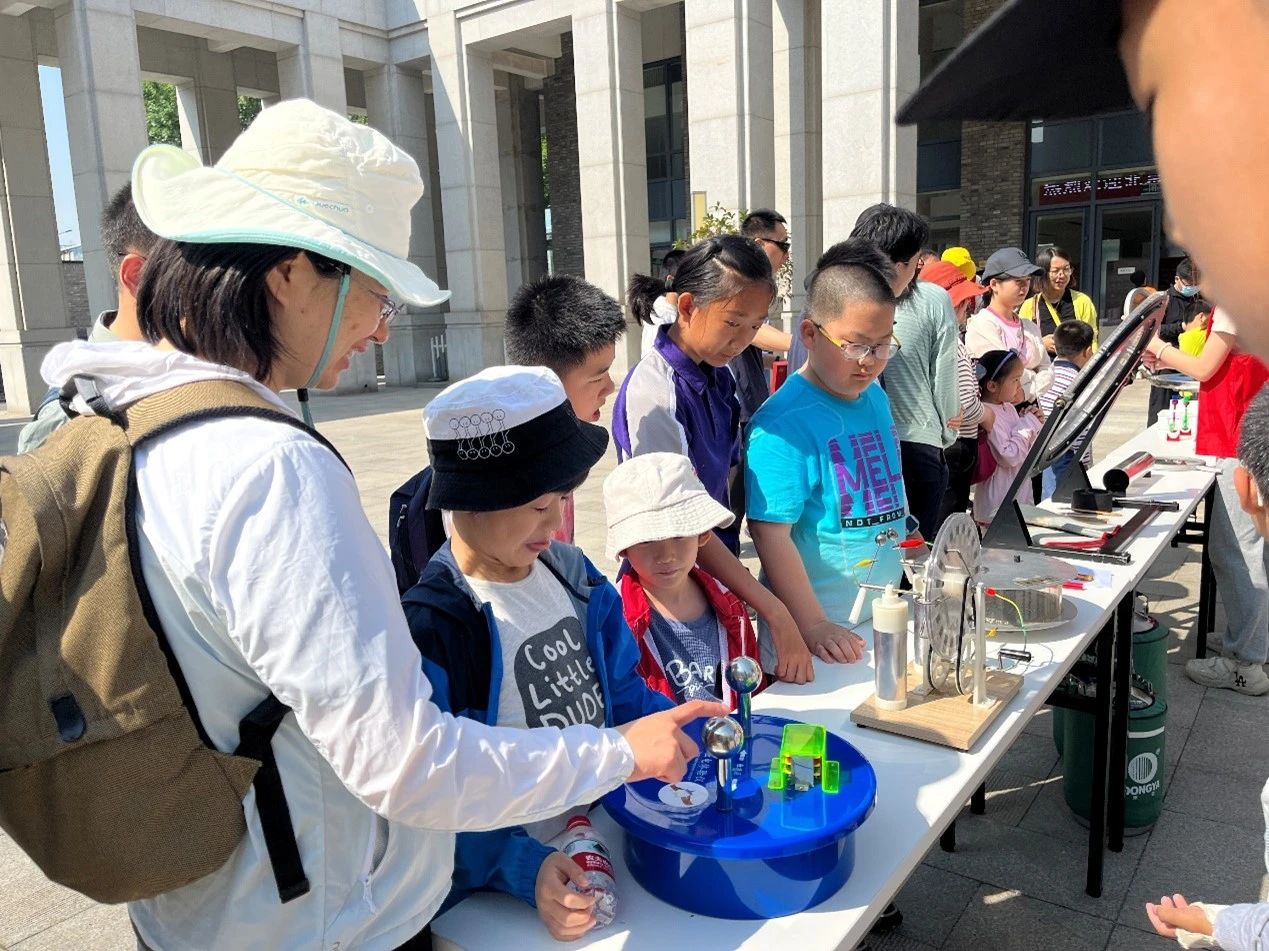 在物院广场上,物院科普协会志愿者们通过生动有趣的物理小实验,点燃了校友子女们心中对未知的好奇。孩子们在游戏中体验奇妙的物理世界,在基础物理原理讲解的过程中,增强了对物理的兴趣以及对物理现象的理解。