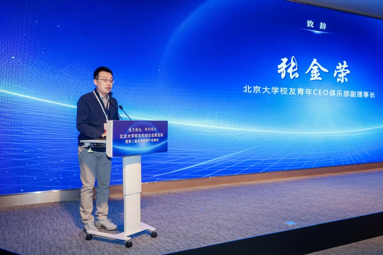 张金荣在致辞中提出,北京大学校友青年CEO俱乐部作为最活跃的北大校友组织之一,致力于链接优秀项目、塑造企业家精神,构建创新创业生态,见证了众多校友从实验室走向产业前沿,推动技术商业化落地。