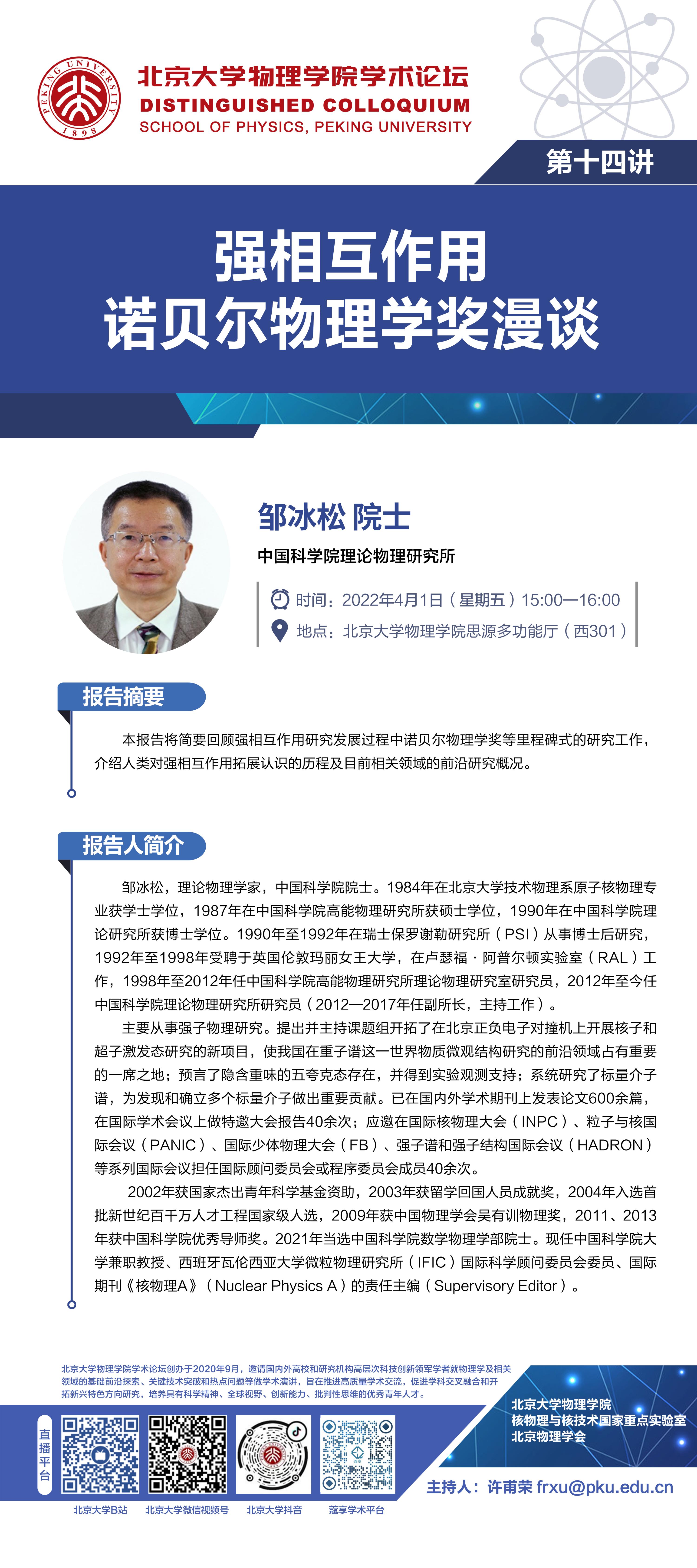 北京大学物理学院学术论坛(第十四讲):强相互作用诺贝尔物理学奖漫谈