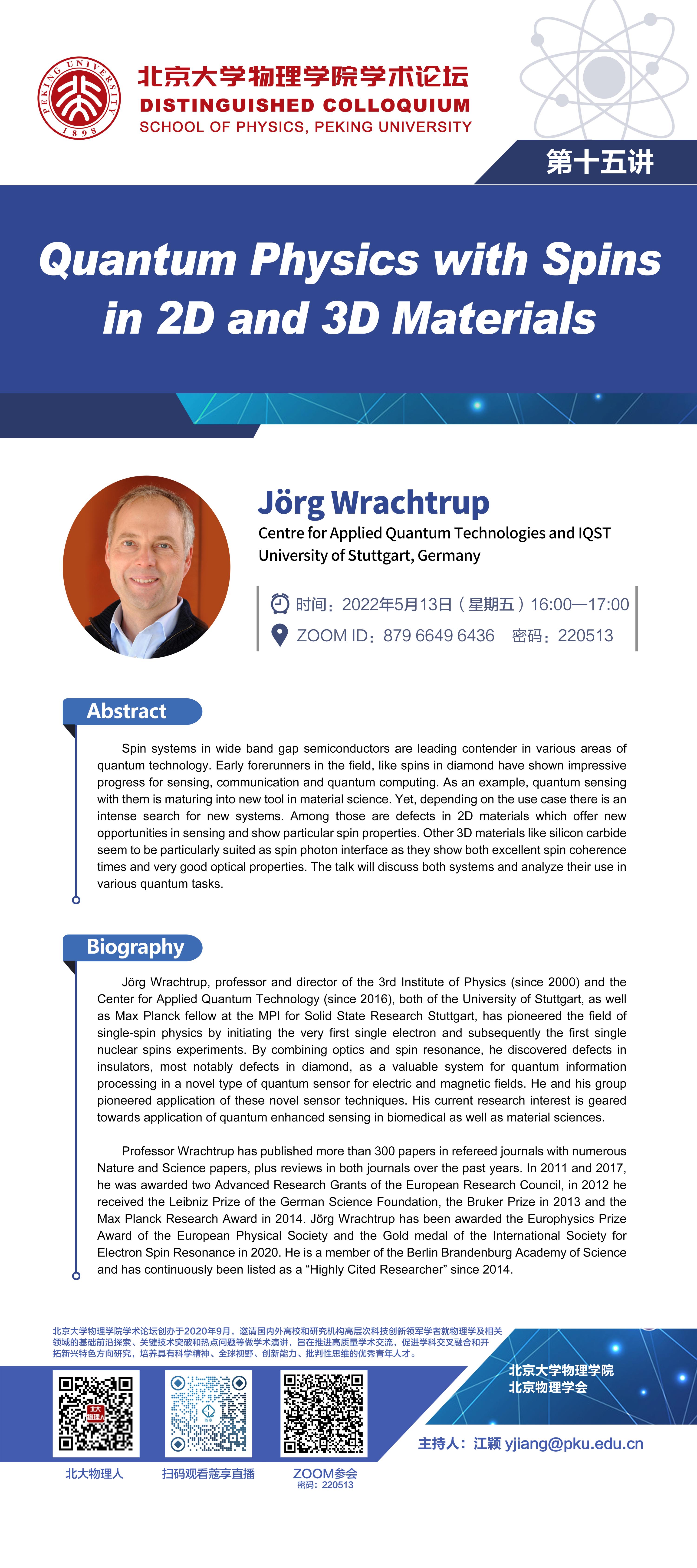北京大学物理学院学术论坛创办于2020年9月,邀请国内外高校和研究机构高层次科技创新领军学者就物理学及相关领域的基础前沿探索、关键技术突破和热点问题等做学术演讲,旨在推进高质量学术交流,促进学科交叉融合和开拓新兴特色方向研究,培养具有科学精神、全球视野、创新能力、批判性思维的优秀青年人才。