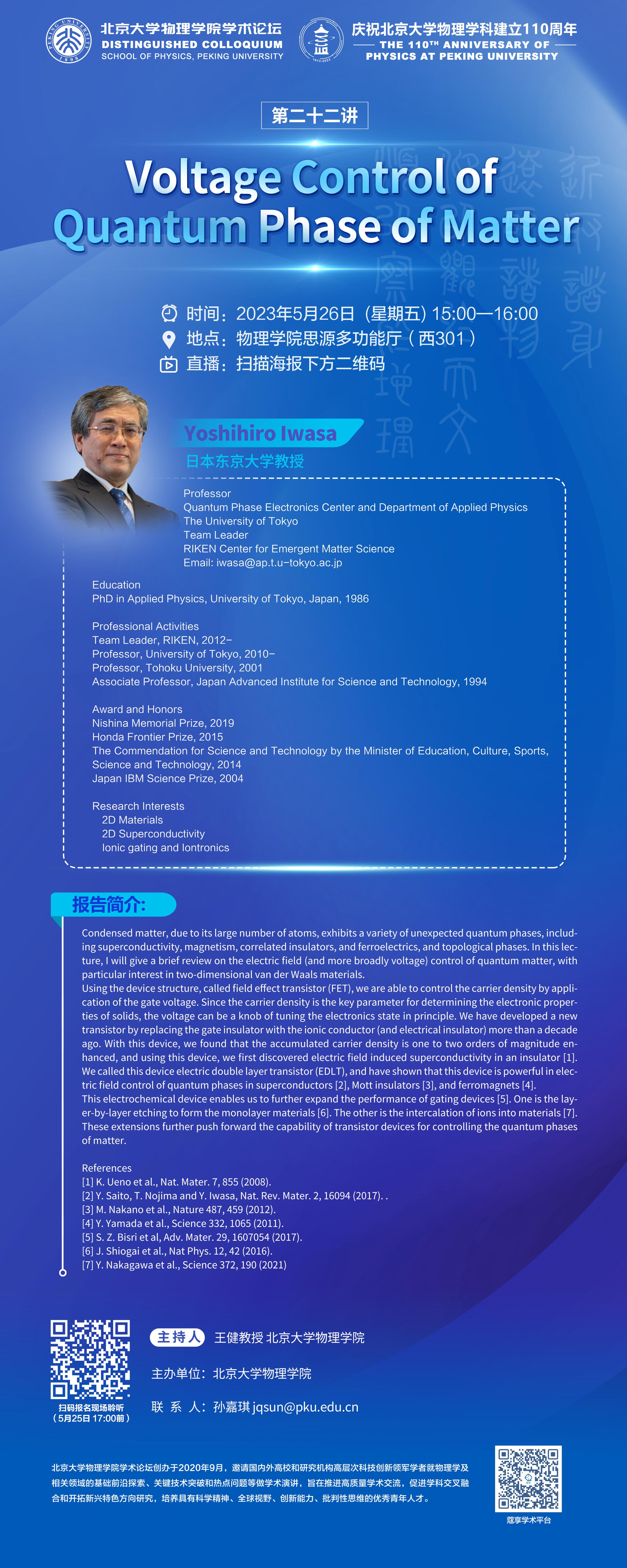 Yoshihiro Iwasa,Professor,Quantum Phase Electronics Center and Department of Applied Physics,The University of Tokyo