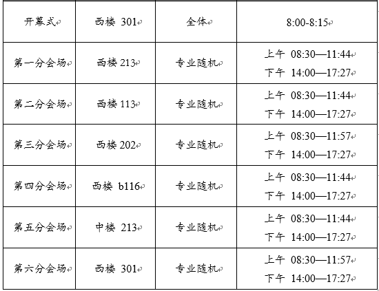 每个会场的评选都分为上下午两场,每场中途会有15分钟的茶歇,届时我们会在西楼一楼大厅和二楼中厅各摆一个茶歇台,西113,b116会场选手请就近去一楼大厅,西202,213,301,中213会场选手请就近去二楼中厅品尝各种水果、精美点心等。午餐在西楼大厅11点40开始,我们为大家准备了披萨、糕点、水果等食物,各位可自助取用。未参赛同学也可以参与茶歇。