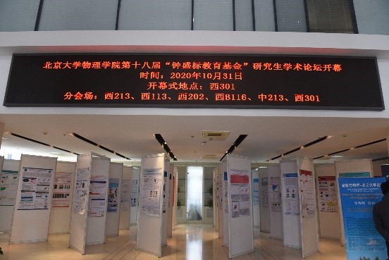 2020年10月31日早,北京大学物理学院第十八届“钟盛标教育基金”研究生学术论坛会于物理学院西301思源报告厅开幕。物理学院党委副书记穆良柱、副院长彭良友、本届论坛评委老师代表、团委书记张帆、团委副书记王婧出席开幕式。