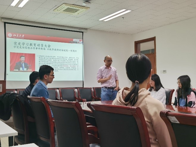 随后,党委副书记穆良柱老师和大家也进行了分享交流。穆老师启发大家思考学习党史和做科研之间的共通之处。他分享到,马克思用科学的观察方法,理性的认知构建出了马克思主义。一百年来,中国共产党利用科学的方法在实践中正确认识中国国情,探索出一套具有中国特色的社会主义。科研,也是利用科学的方法,不断实践,认识,创新。他强调,学习党成功的宝贵经验和面对挫折的求进精神,能帮助研究生们更好地做好科研,树立正确的人生观、价值观和世界观。