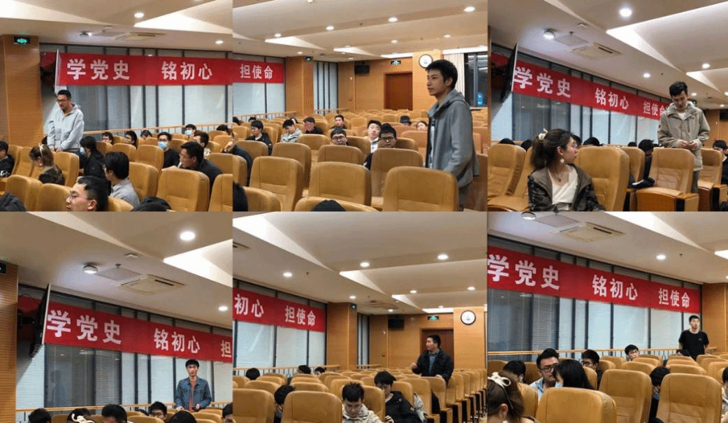 中国共产党百年以来的辉煌党史和四位同学的精彩讲解充分调动了大家的情绪,最后大家积极地发表了自己在学完党史后的体会,认识到学习党史是新时代建设和现代社会发展建设的需要,同志们在党史学习过程中铭记了历史,坚定了信念。正如习近平总书记所说,广大青年要肩负历史使命,坚定前进信心,立大志、明大德、成大才、担大任,努力成为堪当民族复兴重任的时代新人,让青春在为祖国、为民族、为人民、为人类的不懈奋斗中绽放绚丽之花。