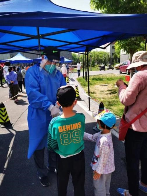 郑涛老师在炎炎夏日下开展核酸志愿者工作