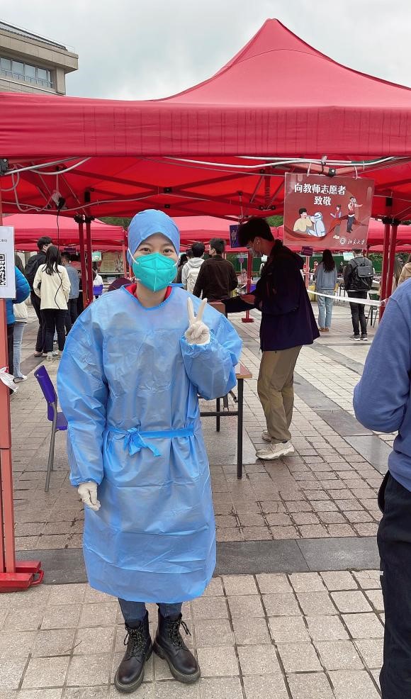 王思广老师在校内核酸采样点维持秩序