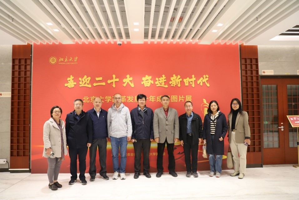 会议结束后,大家来到学校图书馆参观“喜迎二十大 奋进新时代——北京大学改革发展十年成果图片展”。展览对学校近十年来发展建设的重要时间节点和重大事件,以及特色亮点工作进行了梳理,设置了“习近平总书记的亲切关怀”“加强党对学校的全面领导”“推进马克思主义理论学科领航”“人才培养:德才兼备,体魄健全”“‘冰新一代’冬奥风采”等专题内容板块,从多个角度综合展现了新时代学校改革发展所取得的丰硕成果。
