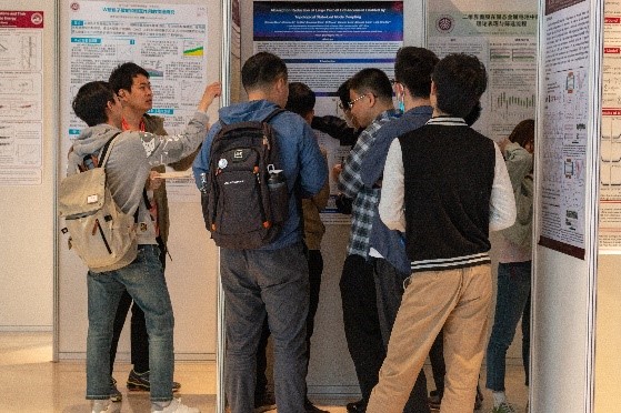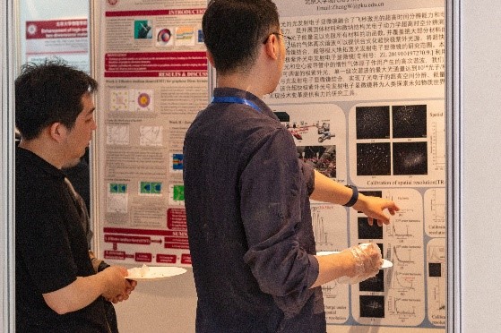 中午,海报展示与午餐会同步举行,在物理学院一楼大厅,参会选手们一边享用午餐,一边在海报前驻足讨论,在轻松的氛围中进行了更加深入的学术交流。
