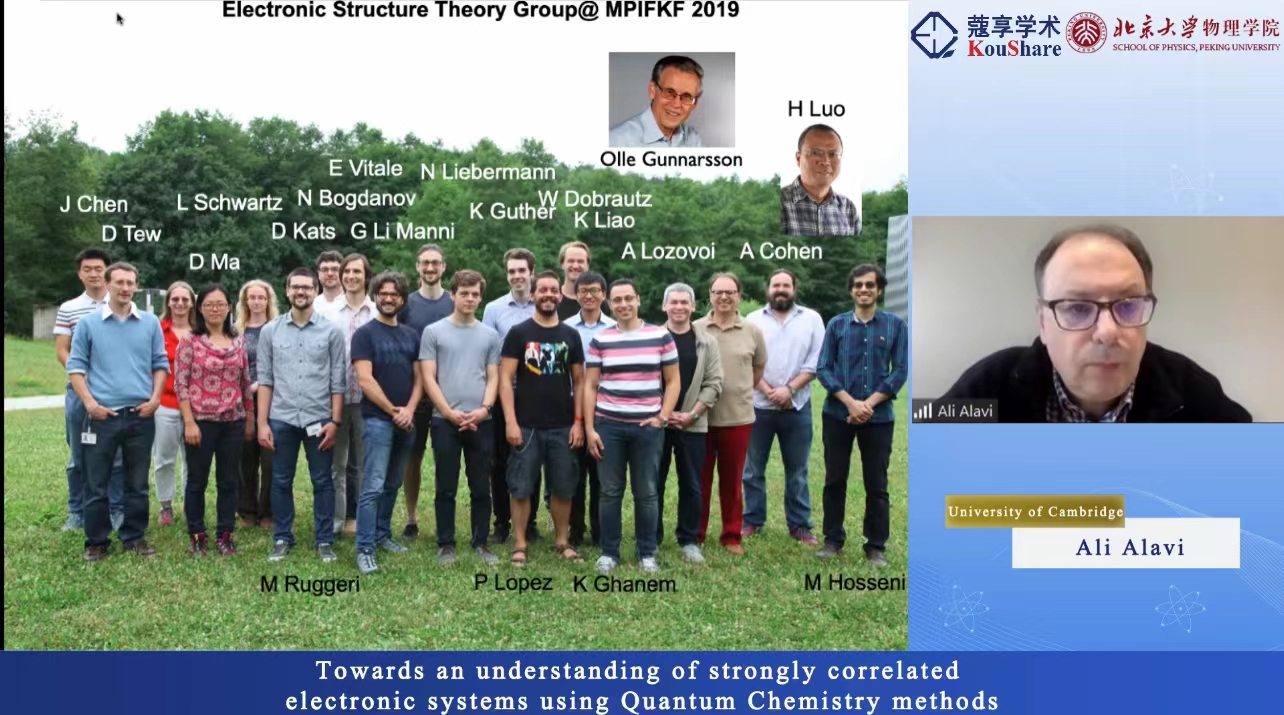 2021年11月26日,北京大学物理学院学术论坛2021年秋季学期第三讲(总第十一讲)在物理学院思源多功能厅成功举行。马克斯·普朗克固态研究所(Max Planck Institute for Solid State Research)主任Ali Alavi教授应邀做了题为“从量子化学方法理解强相关电子系统”(Towards an understanding of strongly correlated electronic systems using quantum chemistry methods)的学术报告。本次论坛由物理学院凝聚态物理与材料物理研究所、人工微结构和介观物理国家重点实验室陈基助理教授主持。